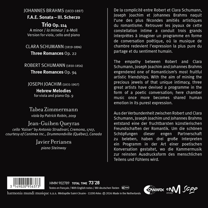 The empathy between Robert and Clara Schumann, Joseph Joachim and Johannes Brahms engendered one of Romanticism’s most fruitful artistic friendships. With the aim of mining the precious jewels of that unique intimacy, three great artists have devised a programme in the form of a poetic conversation; here chamber music once more becomes shared human emotion in its purest expression.
