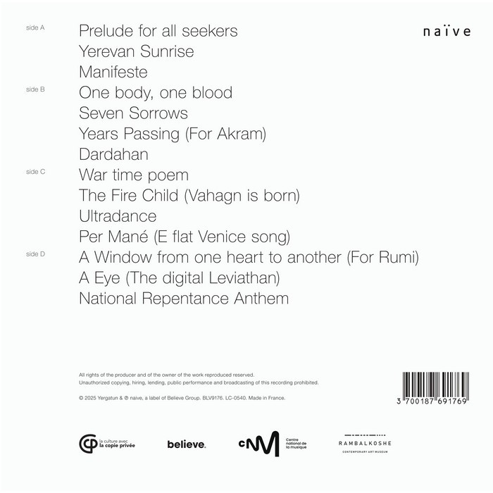 The album unfolds like a ritual sequence — from the meditative “Prelude for All Seekers” to the powerful “National Repentance Anthem.” Collaborators include longtime partners Marc Karapetian (bass) and drummers Arthur Hnatek, Arman Mnatsakanyan, Matt Garstka, and Nate Wood, alongside contributions from cellist Artyom Manukyan, trumpeter Daniel Melkonyan, guitarist Nick Llerandi, and the Yerevan State Chamber Choir conducted by Kristina Voskanyan. Each piece radiates Hamasyan’s fascination with transcendence and transformation, whether through the fiery rhythmic drive of “Dardahan” and “Ultradance,” the haunting choral layers of “One Body, One Blood,” or the intimate dedications “Years Passing (For Akram)” and “A Window from One Heart to Another (For Rumi).”