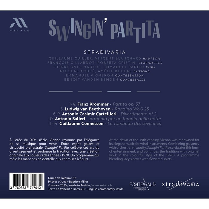 At the dawn of the 19th century, Vienna was renowned for its elegant music for wind instruments. Combining gallantry with orchestral virtuosity, Swingin’ Partita celebrates this form of entertainment, and continues the tradition with original work in the colourful style of the 1970s. A programme blending lacy sleeves with flowered shirts...